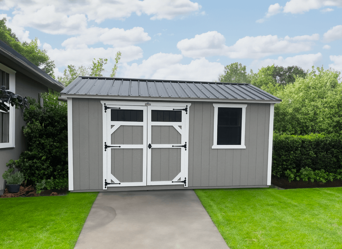 When you are looking to get all your gardening and lawn equipment organized, a Garden Shed is an ideal storage shed. The forward-slanted roof is low profile and can sit right beside your home so all your supplies are accessible when you need them.