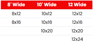 *Due to hauling restrictions, 12’ and 16’ wide buildings are measured from eave to eave. Wall to wall will measure 11’2” on 12’ buildings and 15’2” on 16’ buildings. Does not apply to buildings delivered in Texas.